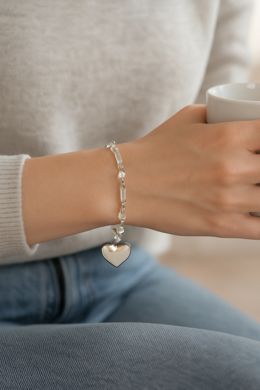 Finished with an adjustable clasp for a secure, customizable fit, this bracelet is crafted for those who love jewelry that feels both meaningful and unmistakably glamorous ideal for Valentine gifts, evening looks, or anytime you want a keepsake sparkle with presence.